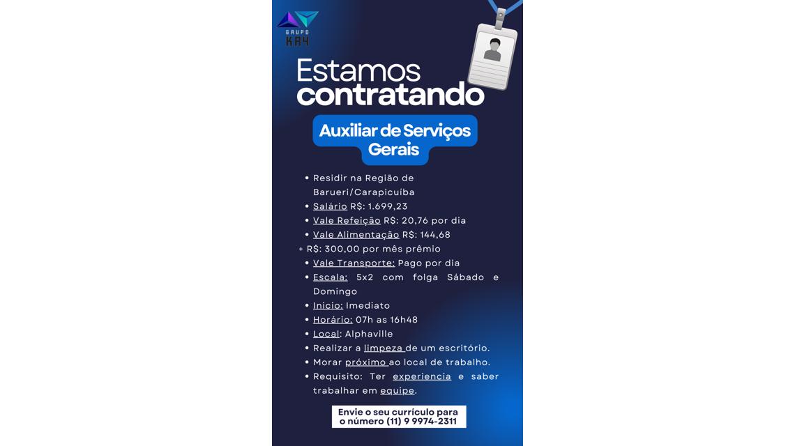 Requisito: Ter experiencia e saber trabalhar em equipe.