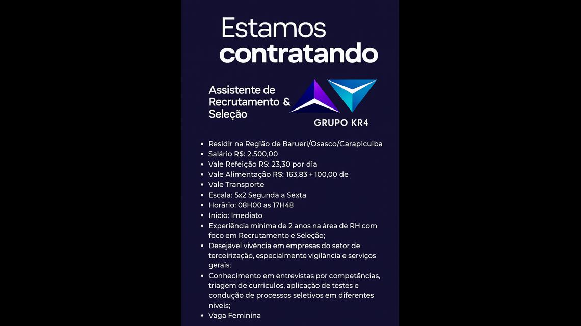 - Boa comunicação verbal e escrita, organização e capacidade de lidar com alto volume de vagas;
